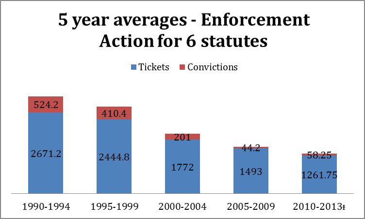 ᵻ - Since the province has not yet released 2014 enforcement statistics, we have averaged the 2001-2013 period for this graph over the past 4 years, not 5.