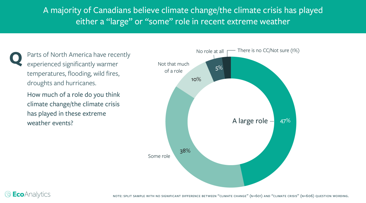 I’m not alone in this. A recent poll by EcoAnalytics found that 85% of Canadians felt that climate change had played some role in the "significantly warmer temperatures, flooding, wild fires, droughts and hurricanes" experienced recently in North America (and 47% felt that climate change had played a large role).