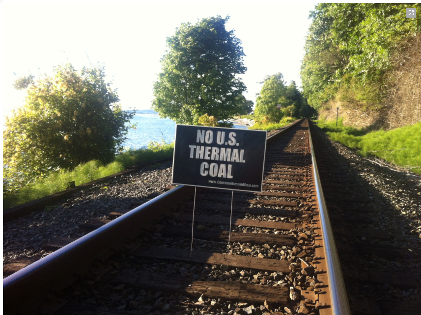 Top Photo: Communities and Coal sign protesting proposed coal port, by Don Pitcairn, South Surrey