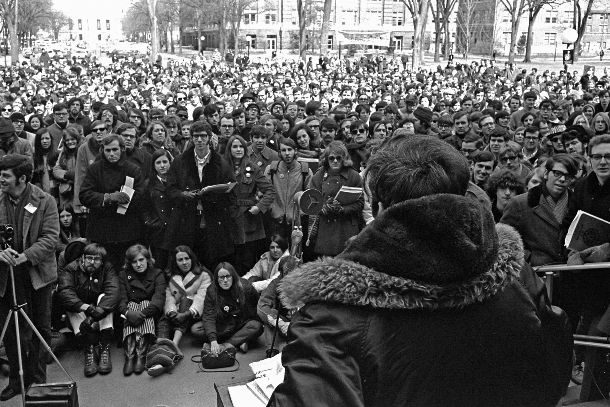 Top photo: Crowds at the University of Michigan on the first Earth Day in 1970 (Photo: University of Michigan School of Environment and Sustainability)