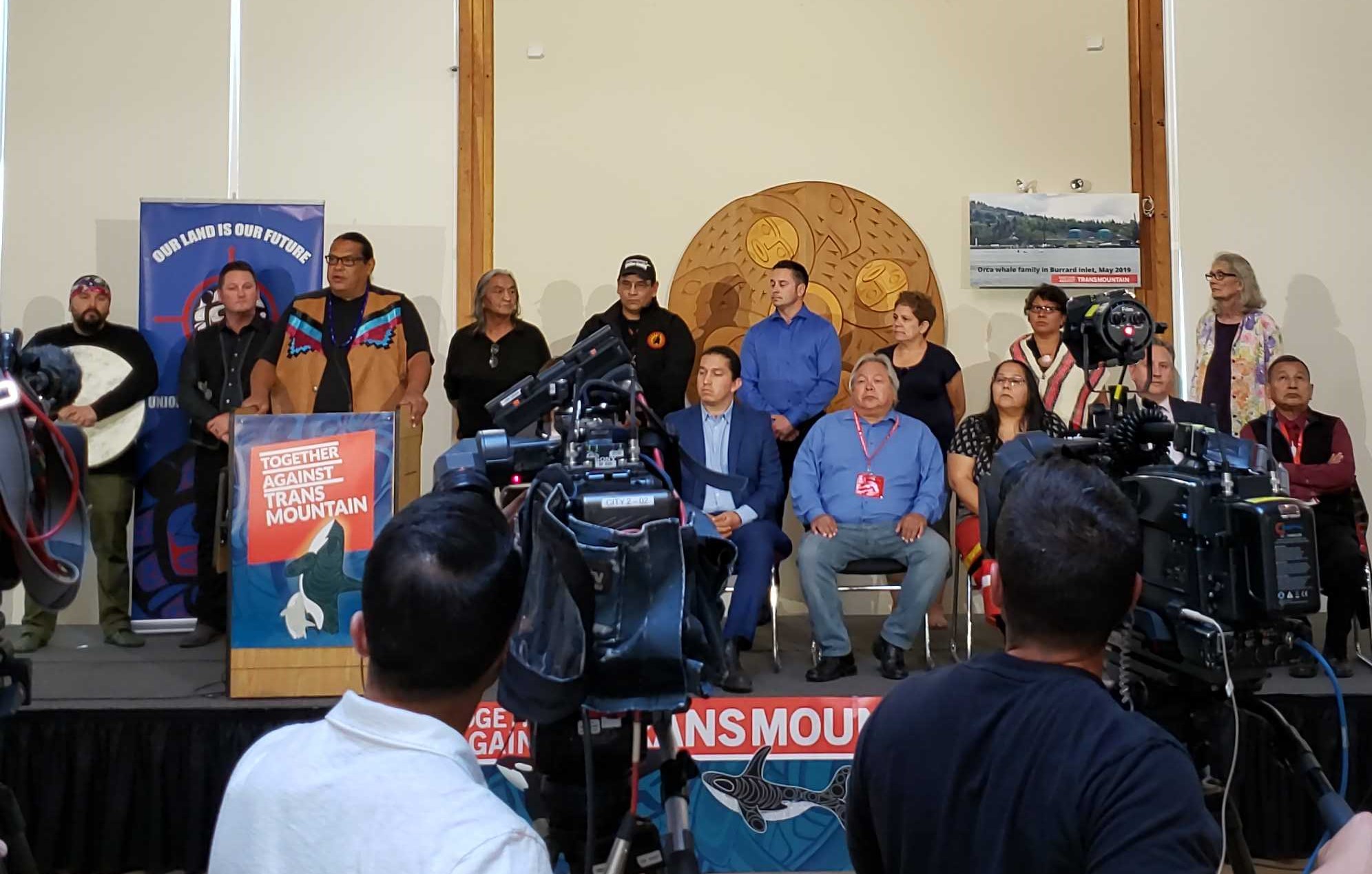 Top photo: Indigenous leaders hold a press conference following the re-approval of Trans Mountain in June 2019 (Photo: Eugene Kung).