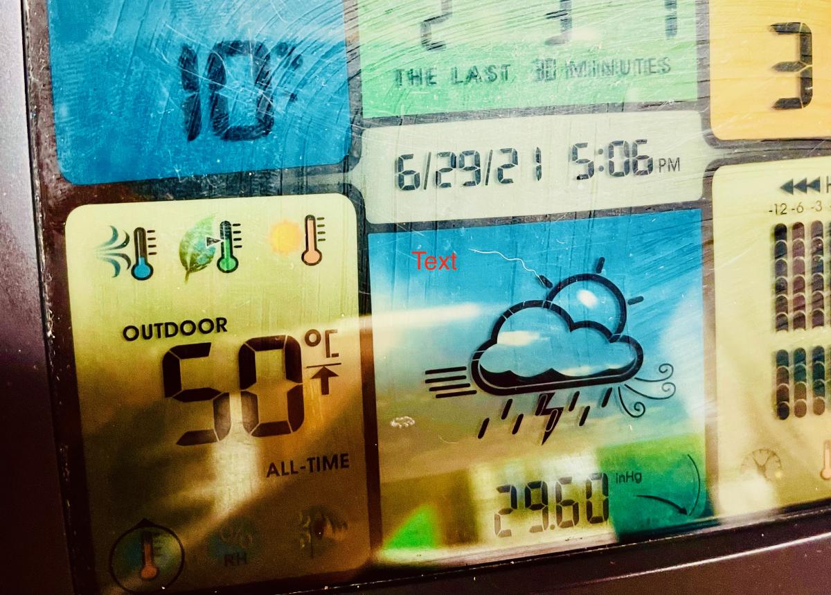 Photos left to right: The temperature reading taken on June 29th, 2021 & my home metereological unit. Whether the reading was accurate to a tenth of a degree, I don't know, but it certainly felt hotter than anything I could have imagined.