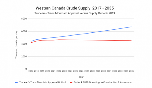 The PBO report, released in February, found that Canada paid the high end of the value for Trans Mountain; that the claim it will result in 15,000 jobs is overblown; and that a cost overrun or delay (now both likely), would render the project completely uneconomic – even with the outdated 2015 CAPP supply outlook.
