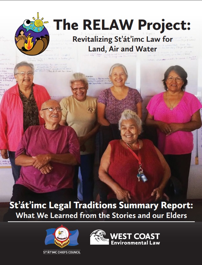 Revitalizing Indigenous Law for Land, Air and Water: St’át’imc Legal Traditions Report : This 203-page report shares teachings from the stories and St’át’imc Elders about legal rights, responsibilities and standards, legal processes and decision-making, teaching, consequences and enforcement, as well as foundational legal principles and legal principles related to inter-community and international relations.