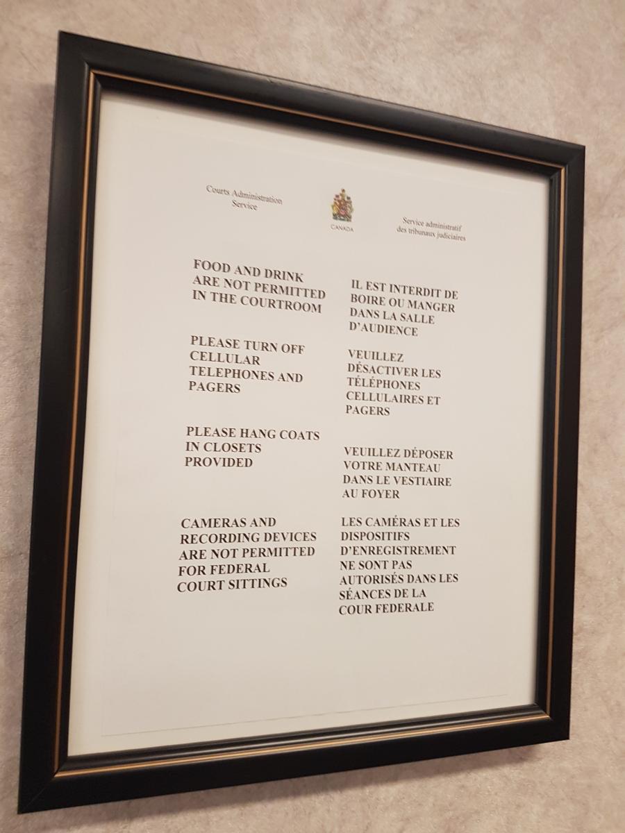 Since the Federal Court does not permit photography in the court rooms, we will be resorting to another form of visual aid for this blog: road signs.