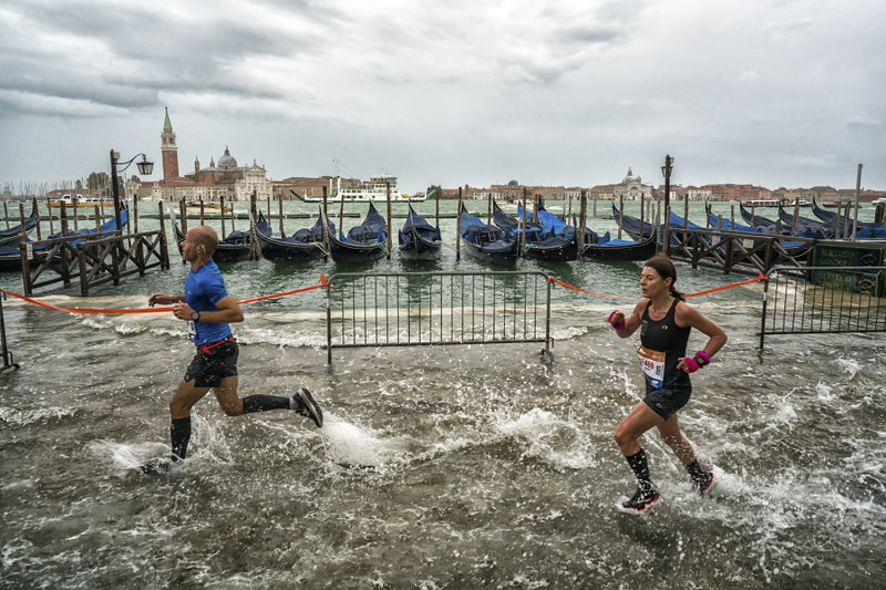 Top photo: Runners in Venice, where sea level rise and flooding are increasing as a result of climate change. (Photo: Roberto Trombetta via Flickr Creative Commons)