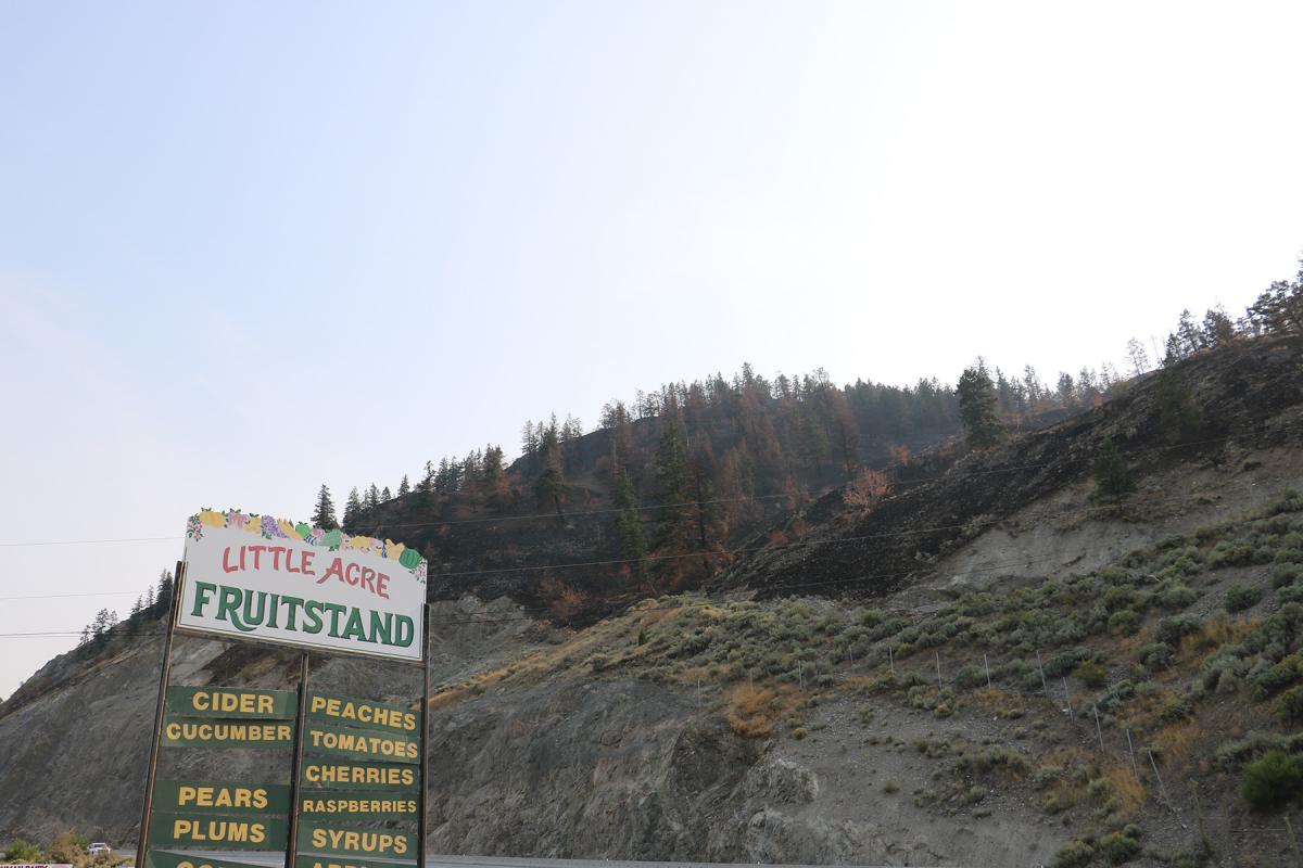 I stopped to stock up on ripe Okanagan peaches at a little fruit shop off the highway. There I spoke to the owners, who had owned the place for sixty years. They echoed what others in the area had also told me: that while fire crews were working at full capacity, they were unable to respond fully to each fire, partly due to the sheer number of fires, and also because they were unpredictable. The fruit shop owners had not left their family business, instead camping out in the parking lot of the shop and laying their own makeshift fire prevention materials around the perimeter of the property.