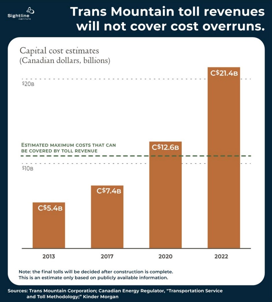Put another way by the Sightline Institute, “These contracts mean that in a best-case scenario, Can$10.9 billion of capital costs can be covered by shipping revenue.”