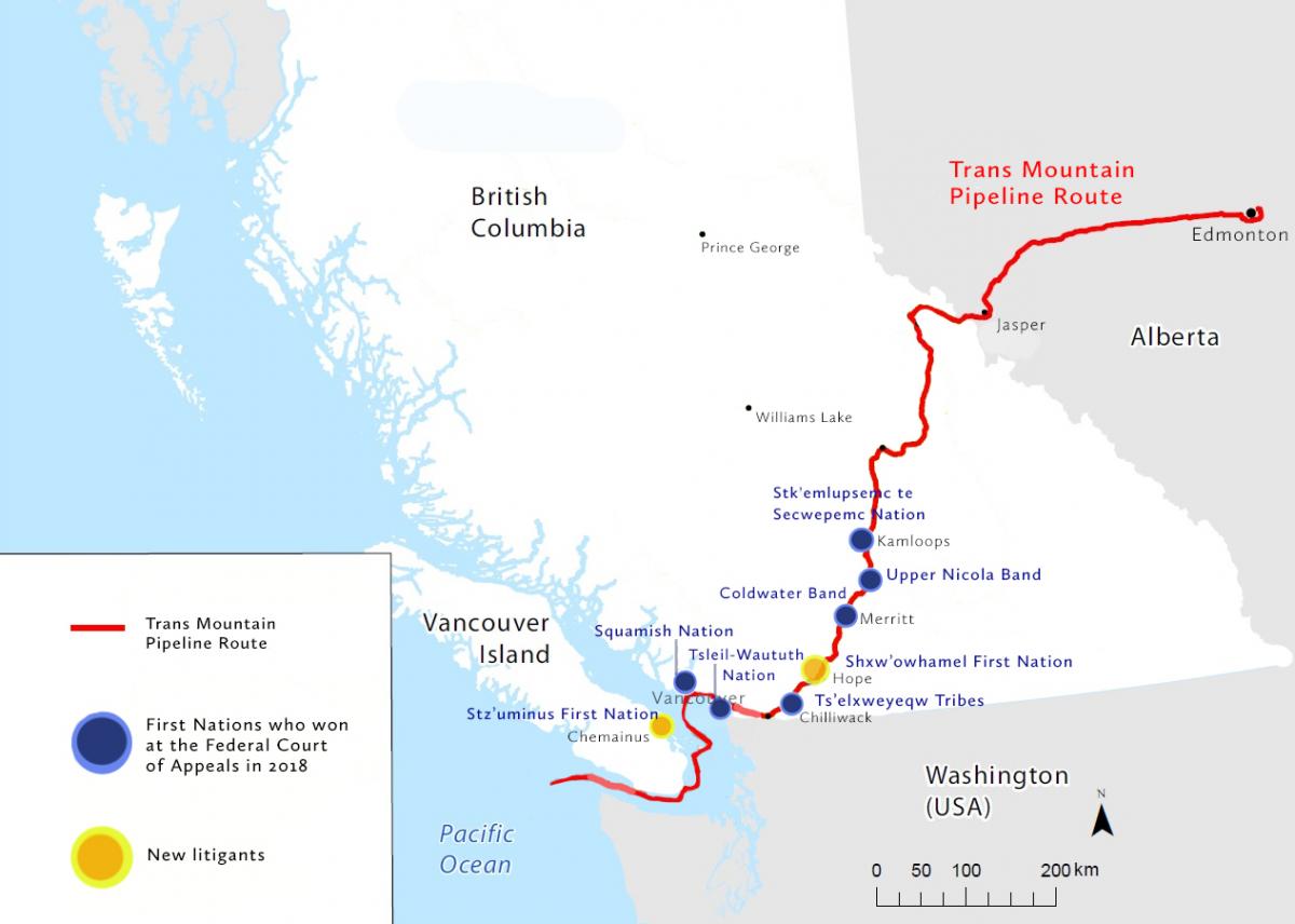 In the first round of lawsuits, six First Nations, environmental groups and municipal governments challenged the original 2016 approval at the Federal Court of Appeal (FCA), and won a decisive victory in August 2018 (the Tsleil-Waututh case). That decision quashed the approvals, and sent the Project back for a redo of the National Energy Board review and constitutionally-required consultation with impacted Indigenous peoples.