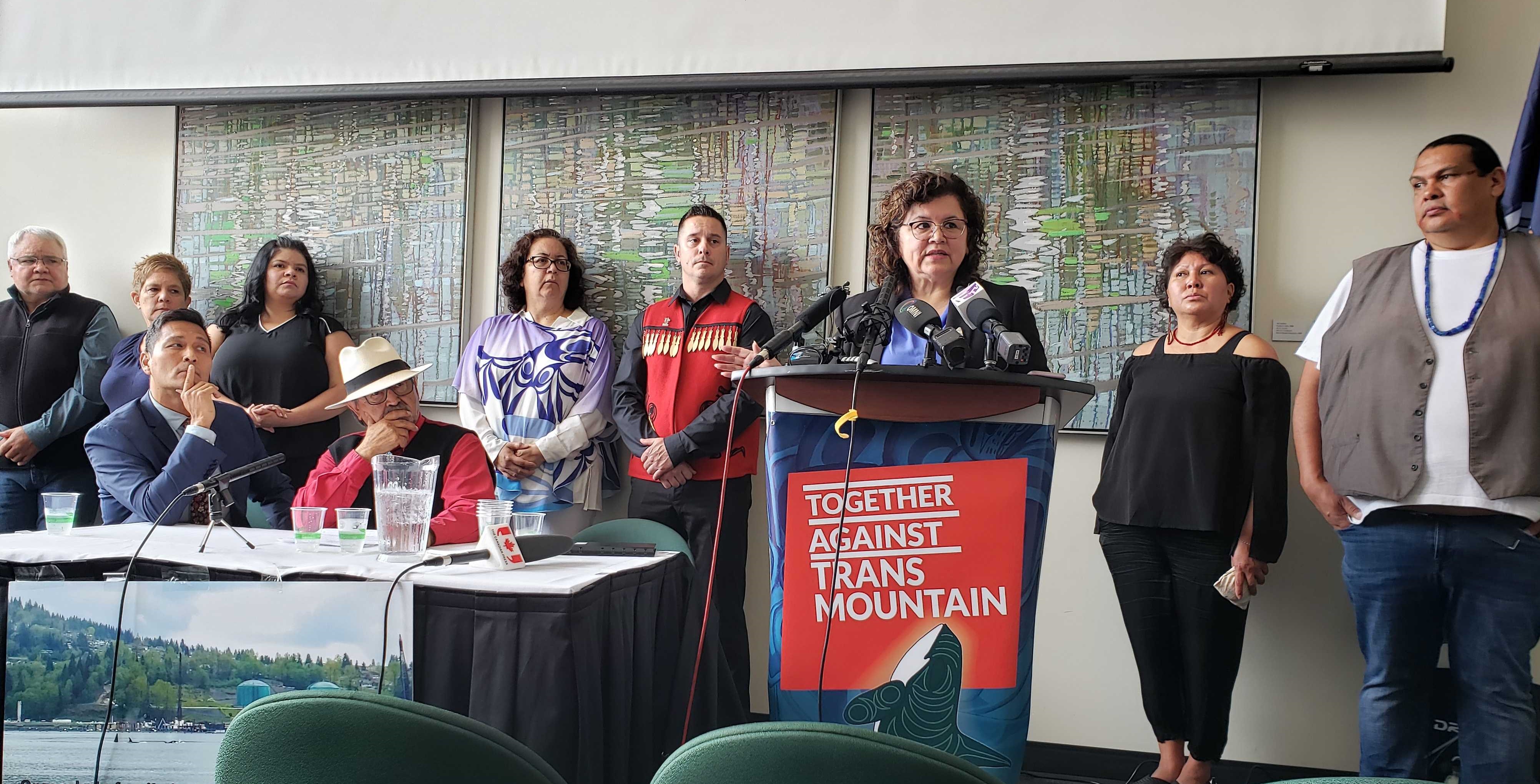 Top photo: First Nations announce the new round of TMX legal challenges at a press conference in July 2019. (Photo: Eugene Kung)