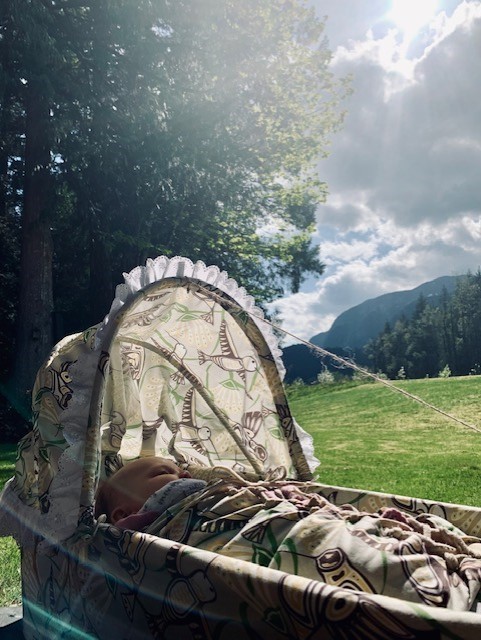 My daughter Sophia in her cradle at four months old