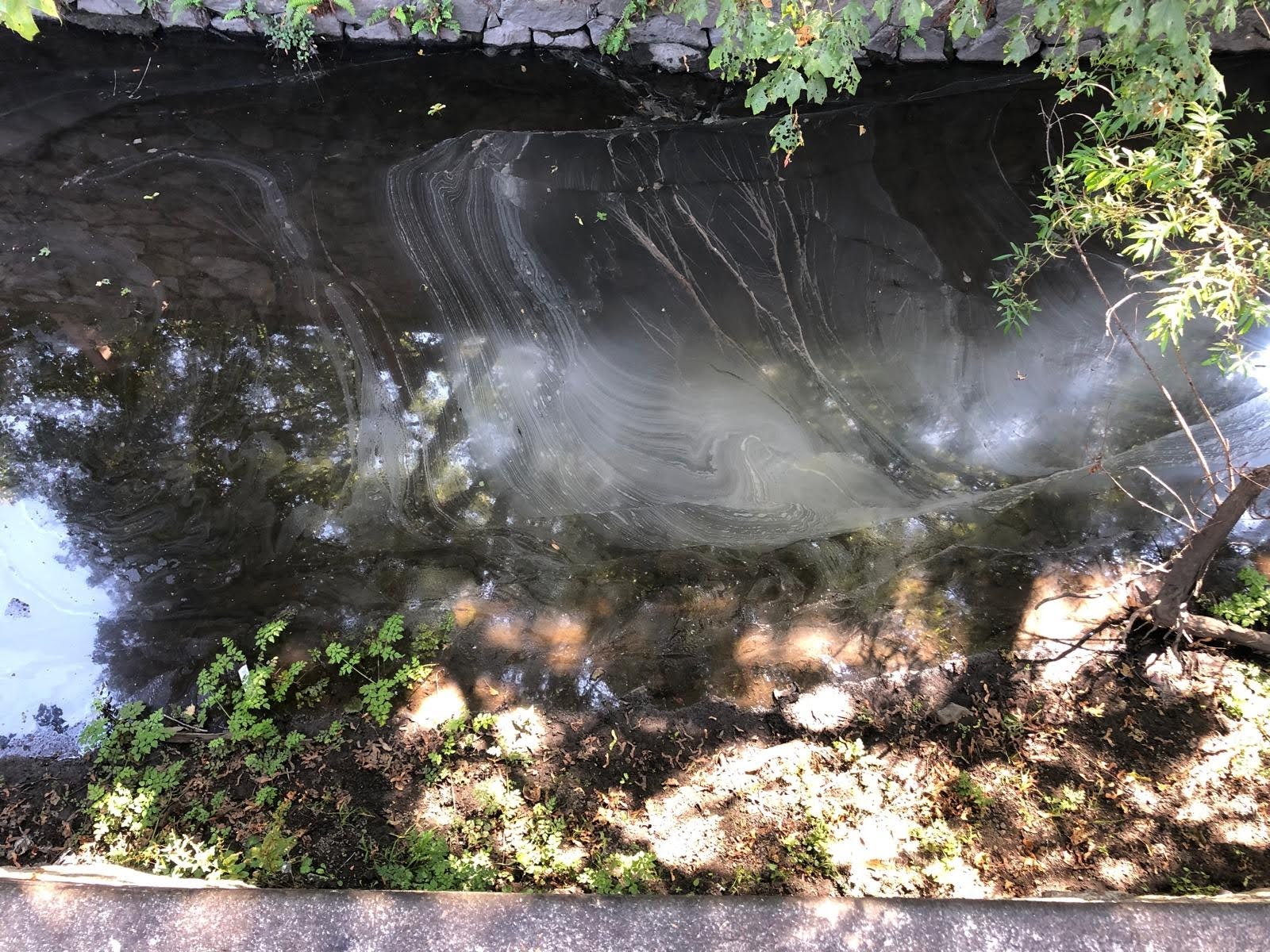 A sheen on the water of Thaywun near Fort St. and Foul Bay Rd.