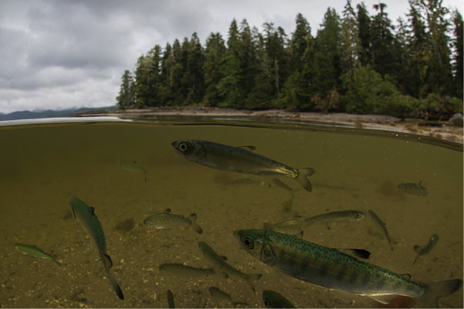 The time that salmon spend in Flora Bank is crucial. It’s when they make their miraculous transformation from creatures adapted to fresh water to those adapted to the salty ocean environment. This is akin to us “learning to breathe on Mars,” says Charmaine Carr-Harris, a scientist who’s been studying Skeena salmon for years.