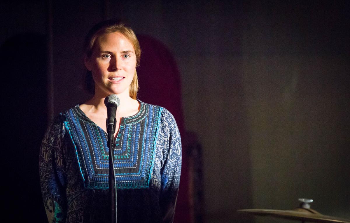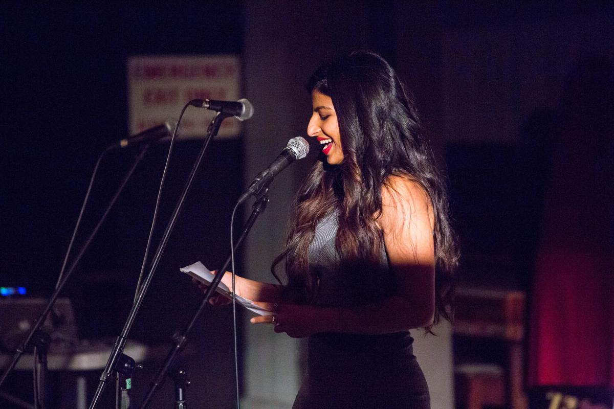 West Coast's Anjali Appadurai speaking at the fundraiser. (Photo: Eva Brownstein)