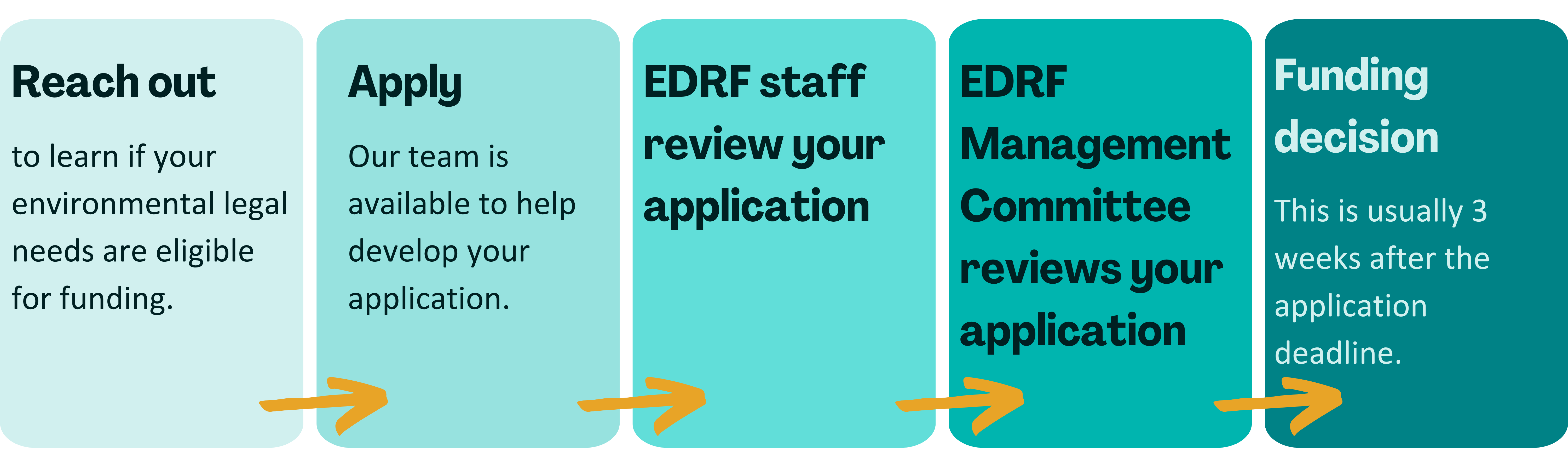 - Apply: Our team is available to help develop your application. There are five set deadlines for application review annually (listed at Apply to the EDRF).