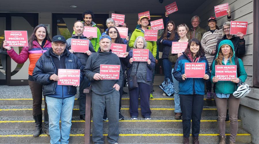 Top photo: My Sea to Sky and Squamish community members successfully advocated to District of Squamish council to deny a permit to a floating work camp in Átl'ḵa7tsem (Howe Sound) / My Sea to Sky