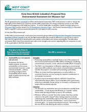 During BC's EA revitalization process, 24 environmental, social justice and community groups released A Vision for Next-Generation Environmental Assessment in British Columbia to set out the high-level principles that should be reflected in a new EA law in order to fully seize the opportunity to rebuild public trust, advance reconciliation and achieve sustainability.