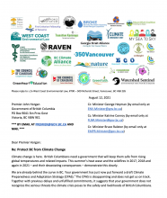 A joint letter from 39 organizations takes Premier Horgan to task for the delays and vagueness in BC's Climate Preparedness and Adaptation Strategy and demands that he do more to keep British Columbians safe from climate change.