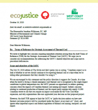 In this letter, West Coast – along with Ecojustice and Environmental Defence – call on Environment and Climate Change Minister Jonathan Wilkinson to build a rigorous, inclusive and participatory strategic assessment that looks at both the mining and the export of thermal coal.