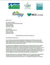 Signatories include: West Coast Environmental Law Association, Nature Canada, MiningWatch Canada, Wildlife Conservation Society (WCS Canada) and Centre québécois du droit de l’environnement.
