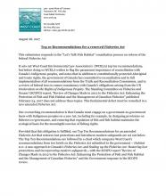 It also compares West Coast’s recommendations from two briefs on the Fisheries Act submitted to the government – Habitat 2.0: A new approach to Canada’s Fisheries Act, and Scaling up the Fisheries Act: Restoring lost protections and incorporating modern safeguards – with the Standing Committee on Fisheries and Oceans (SCOFO) report "Review of Changes Made in 2012 to the Fisheries Act: Enhancing the Protection of Fish and Fish Habitat and the Management of Canadian Fisheries" and the Government response to the SCOFO review.